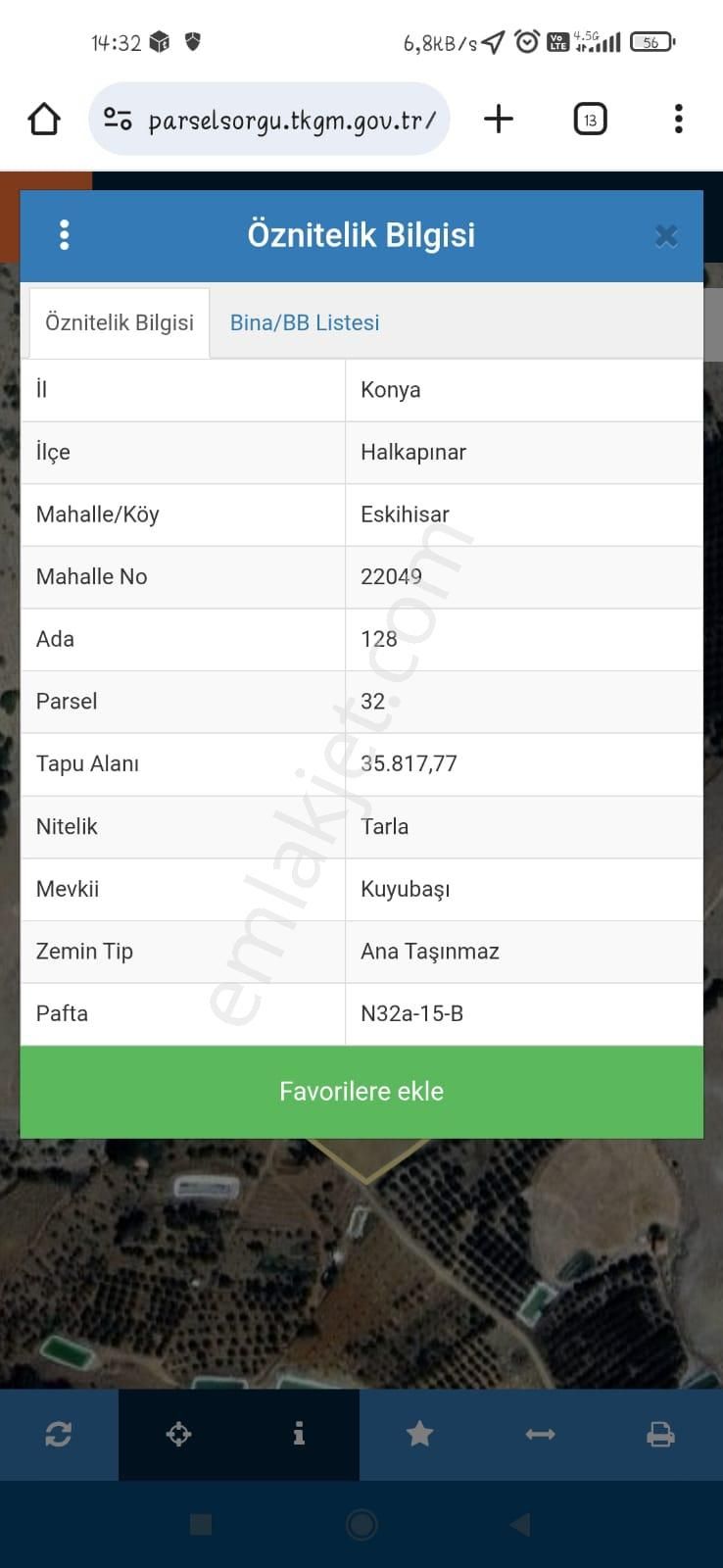 HALKAPINAR ESKİHİSAR MAHALLESİ KIZIL İÇME MEVKİİNDE